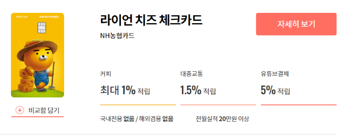 라이언 치즈 체크카드 혜택