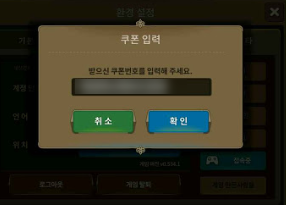 마지막으로 쿠폰을 입력하는 방법은 게임 실행 후 좌측 상단에 프로필을 누른 뒤 쿠폰 번호 버튼을 선택해서 지급받은 쿠폰 번호를 입력해 주시면 됩니다.