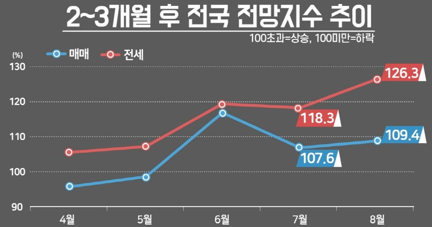 전세시장은 7월 말 계약갱신 청구권과 전월세 상한제가 시행되면서 오름세를 보이고 있고 실거주 집주인이 늘어나면서 전세매물 부족 현상이 나타나고 있습니다. 이에 전세매물 품귀로 무주택자 실수요자들이 중저가 주택을 매입하다 보니 주택 가격 통계는 안정세라고 보이지는 않는데요.