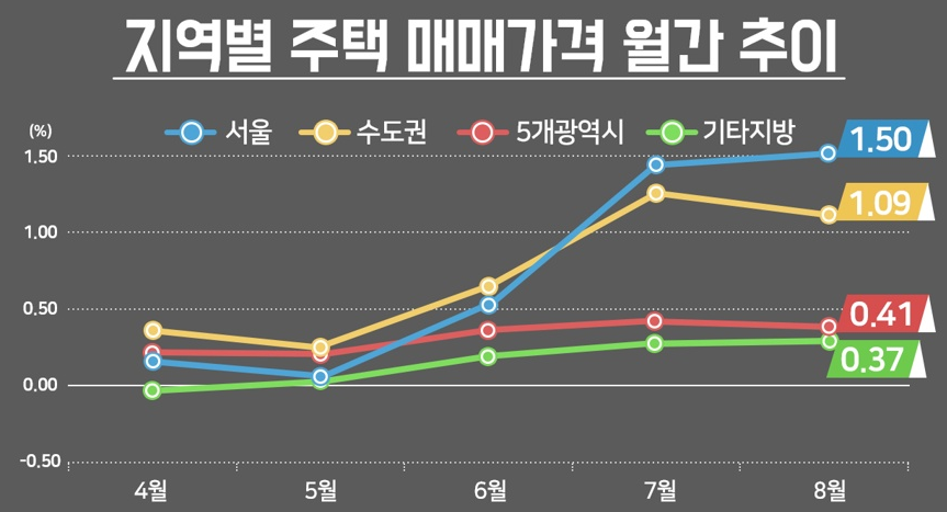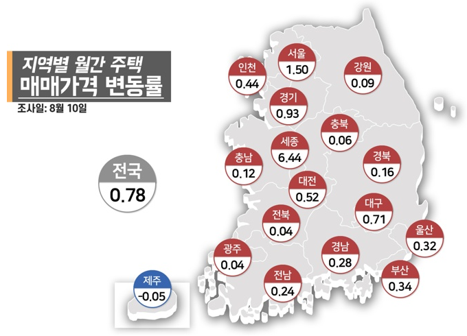 행정수도 이슈 세종 주택 가격 6.4% 역대급 상승 8월 중순 이후 주간 상승폭은 둔화