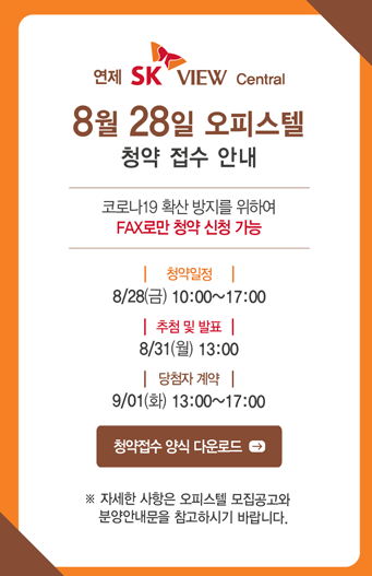 8월 28일 금요일 10시부터 오피스텔 청약 접수가 진행되며 오후 5시까지 진행 예정입니다. 추첨 및 발표는 8월 31일 13시 진행 예정이며 당첨자 계약은 9월 1일 13시부터 17시까지 진행 예정입니다.