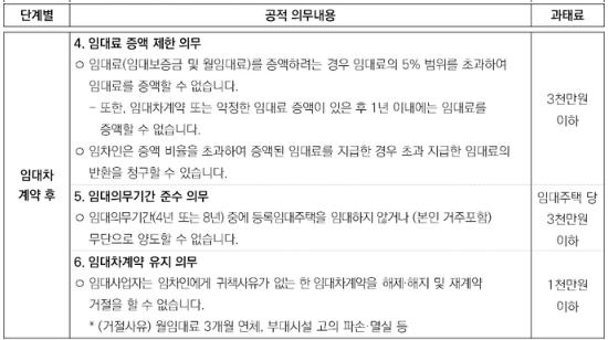 ※ 임대차 계약후 공적의무내용 및 과태료는 다음과 같습니다.