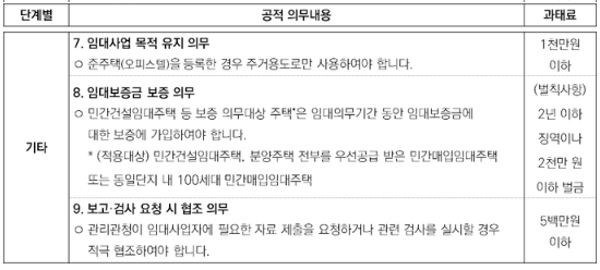 ※ 그외에 임대차 계약 공적의무내용 및 과태료는 다음과 같습니다.