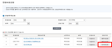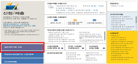 ☞ 홈택스 접속 - 신청/제출 선택 - 일반 세무서류 신청 선택 / 민원명찾기 '납부기한연장' 또는 '징수유예' 선택 - 인터넷 신청 선택