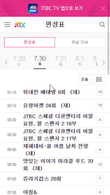 제이티비씨 편성표 바로가기