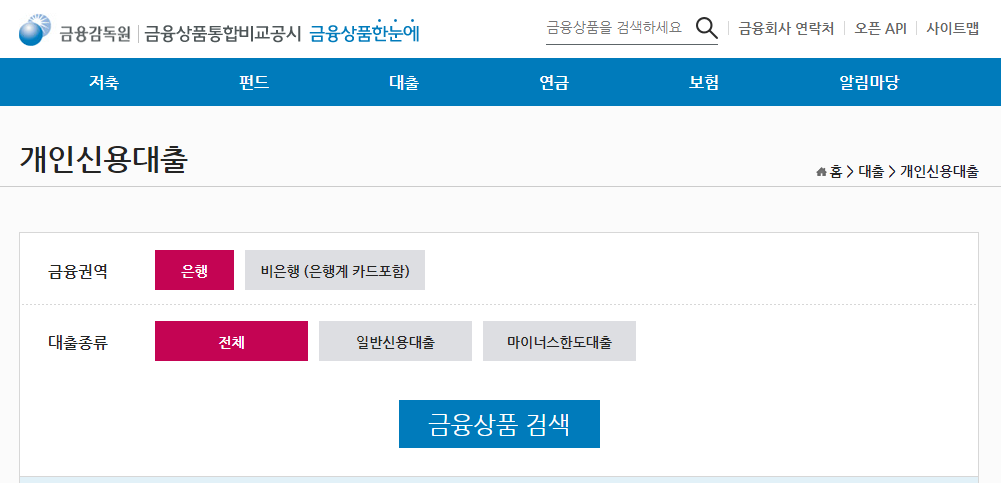 신용등급에 따라 만약 1~2등급이 신한은행이 제일 낮은 2.44% 이고 대체로 다른 신용등급도 낮은 편이고 전북은행이 같은 등급이지만 4.3%로 높은 편에 금리를 적용하고 있는 편입니다. 금융상품 한눈에 사이트에서 상세정보를 직접 클릭하면 기준금리, 가산금리까지 한눈에 볼 수 있습니다.