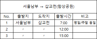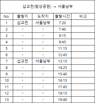 · 서울남부터미널에서 삽교천 함상공원 버스시간표