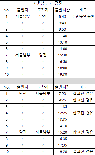 · 서울남부터미널에서 당진 버스시간표